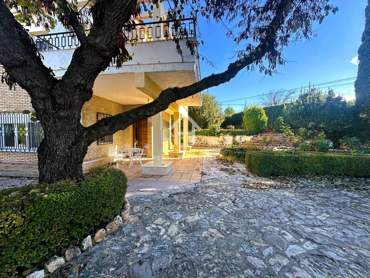 Jardín consolidado: El jardín cuenta con una amplia variedad de árboles y plantas: cipreses, pinos, granados, nogal, higuera, olivos, rosales y otras especies que aportan sombra, privacidad y un entorno natural cuidado durante todo el año.